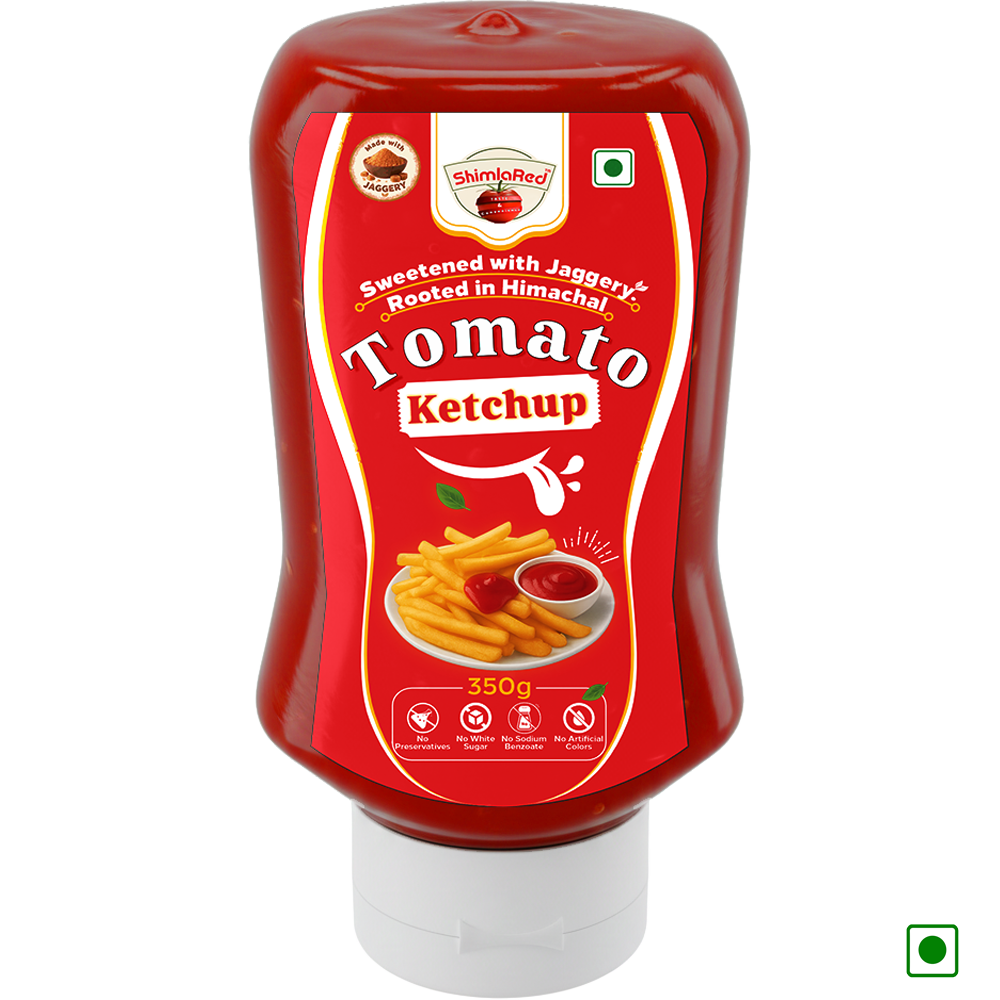 ShimlaRed bring you authentic preservative-free Tomato Ketchup crafted with premium ingredients and sweetened with jaggery. A perfect blend of purity, flavour, and consistency in every ketchup bottle.