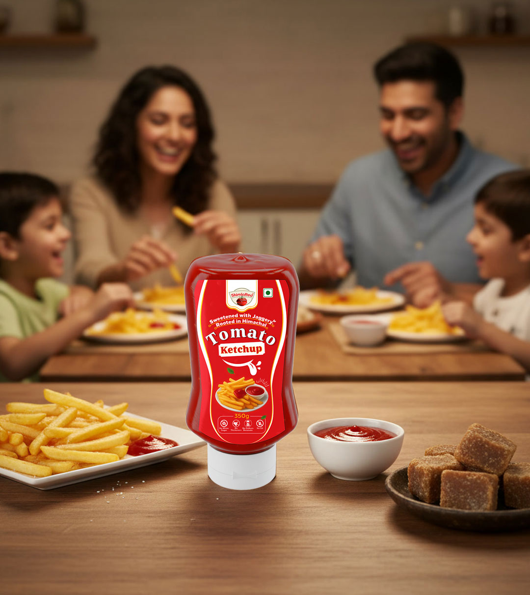 Crafted with precision and care, ShimlaRed’s premium, preservative-free tomato ketchup is sweetened with jaggery for natural wholesomeness.